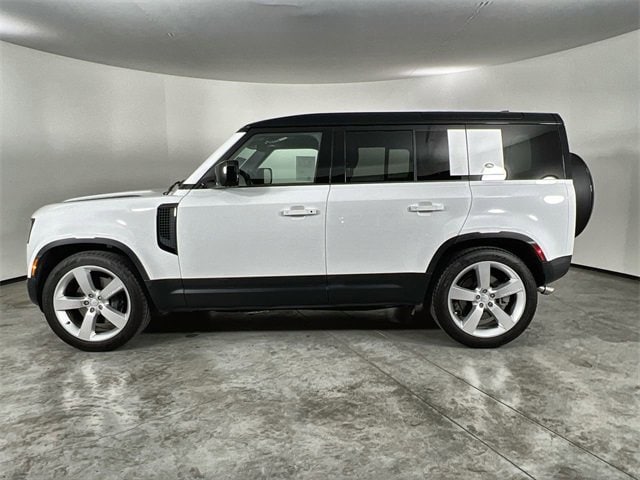 Check out this stunning One Owner 2024 Fuji White Land Rover Defender 110 SE 4WD, featuring luxurious Vintage Tan Windsor Leather! This SUV is packed with amazing features for your comfort and convenience, including an 11-speaker audio system, 14-way climate electric memory front seats, adaptive suspension, alloy wheels, and Apple CarPlay & Android Auto compatibility. Plus, enjoy features like auto high-beam headlights, a heated steering wheel, ventilated front seats, and a powerful navigation system (Connected Navigation PIVI Pro).